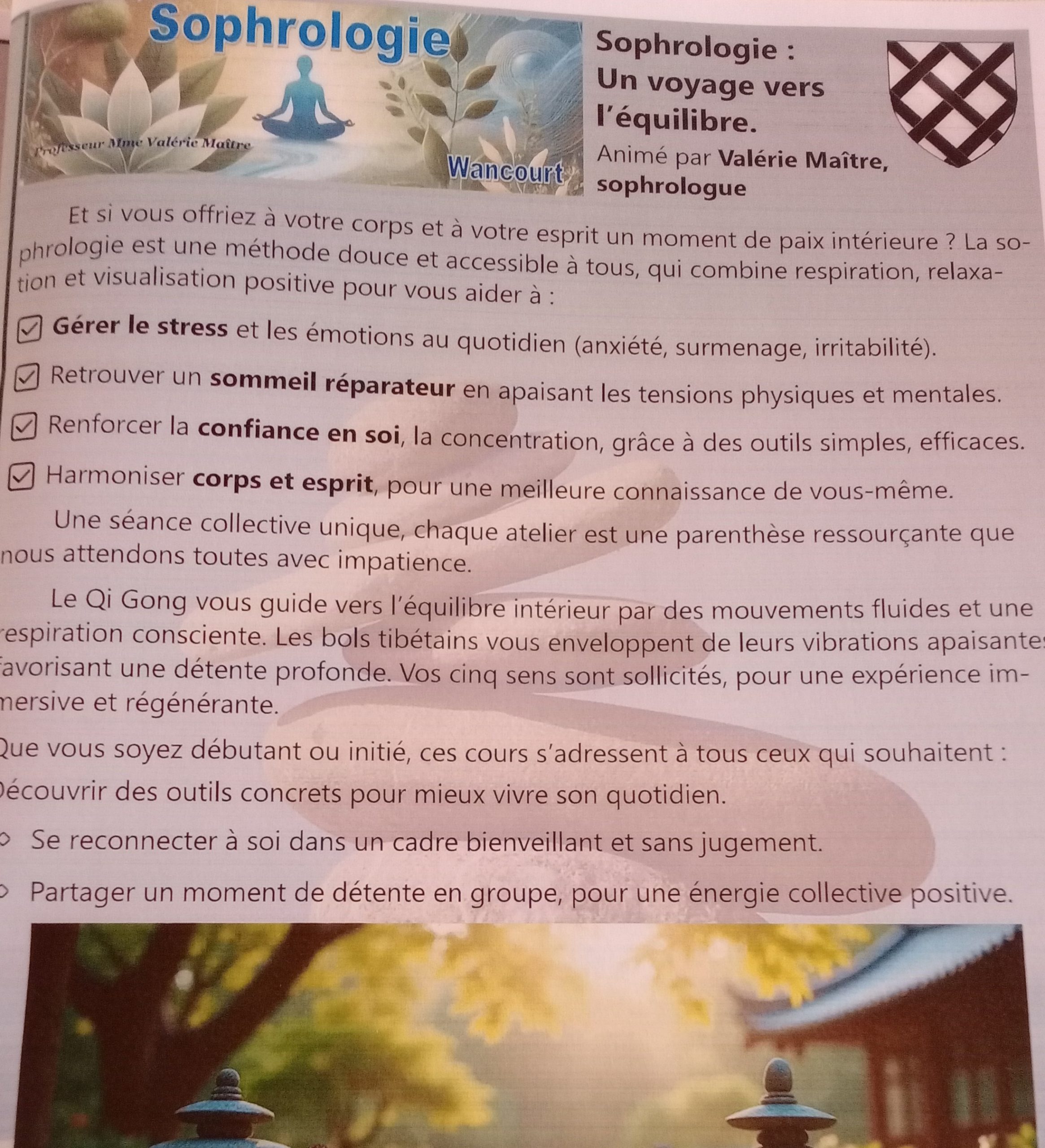 Venez découvrir et participer aux séances de Sophrologie, Qi-Gong, Do-In.